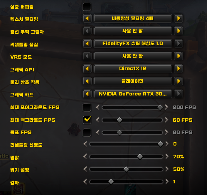 저지연 모드와 텍스처 필터링은 컴 사양이 조금 안 좋다면