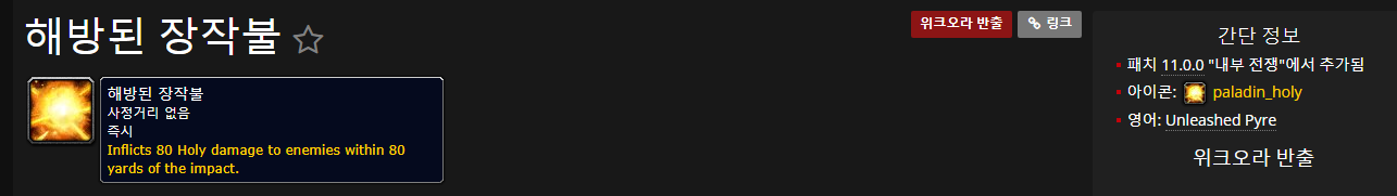 해방된 장작불을 위크오라로 불러올 수 없었음