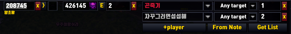 +player 버튼을 눌러 차단을 할 파티원의 아이디를 입력합니다
