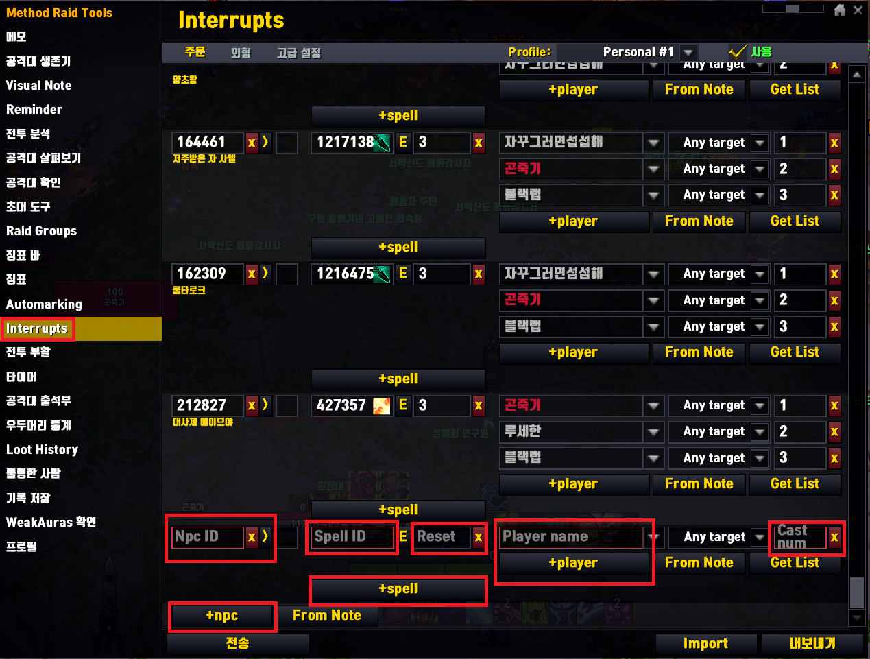 이 네임드의 차단 로테이션을 MRT Interrupts 기능을 활용해서 만들어 보겠습니다