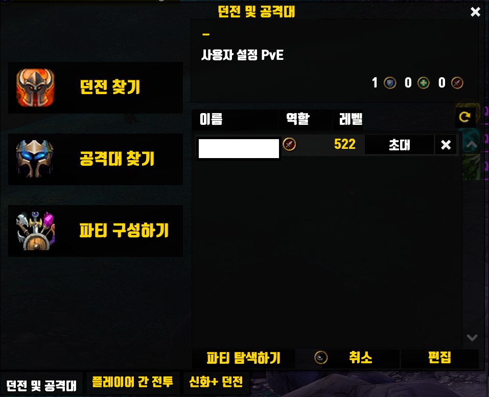 파티 구성 창은 전투 중 팝업 되지 않는다
