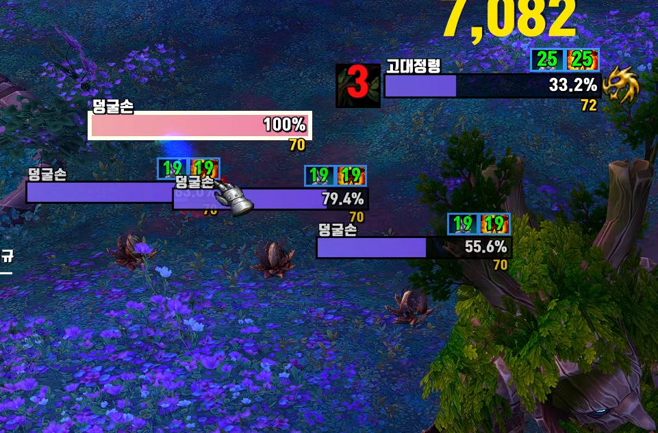 나오는 굶주린 덩굴손(196642)의 도트가 표시 되지 않는다