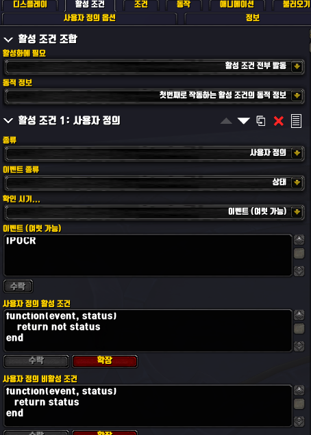 활성조건 1에 IPOCR (타분 영어약어) 란 이벤트를 생성하고