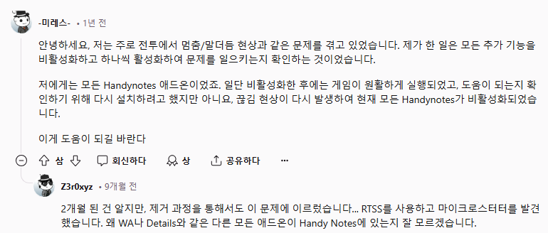 애드온 두개를 비활성화 하고 효과를 느끼고 있다고 한다