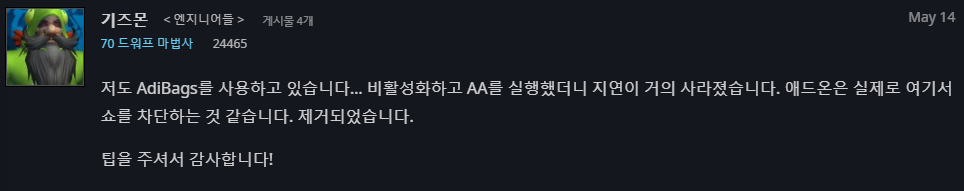와우를 플레이하는데 문제가 있다고 느껴지는 애드온은 이 두개다