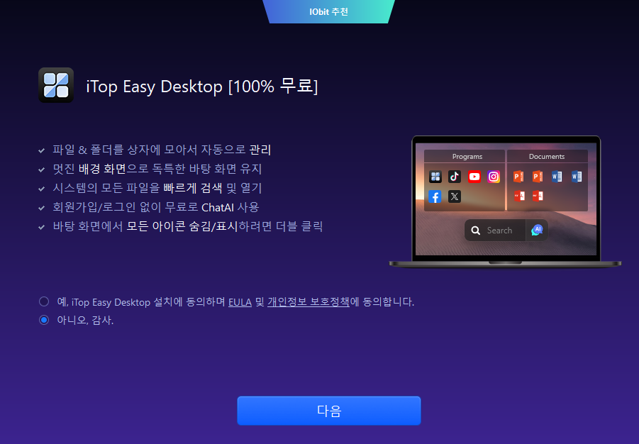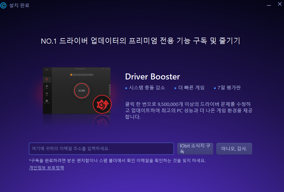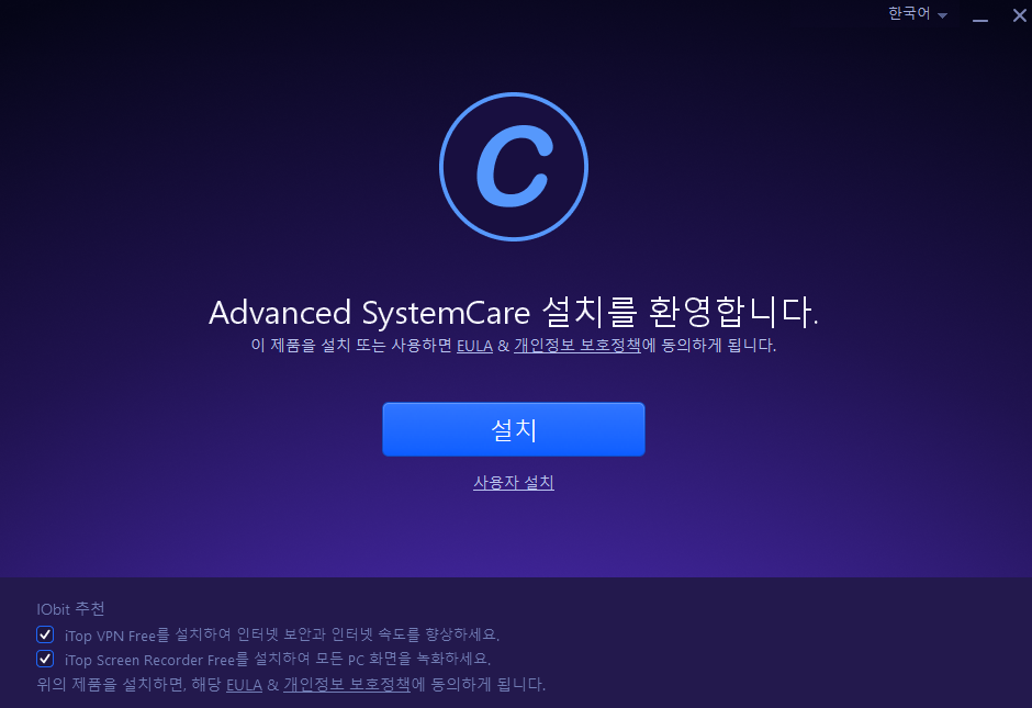 IObit 추천 두 가지 체크박스 해제 한 후 설치 클릭