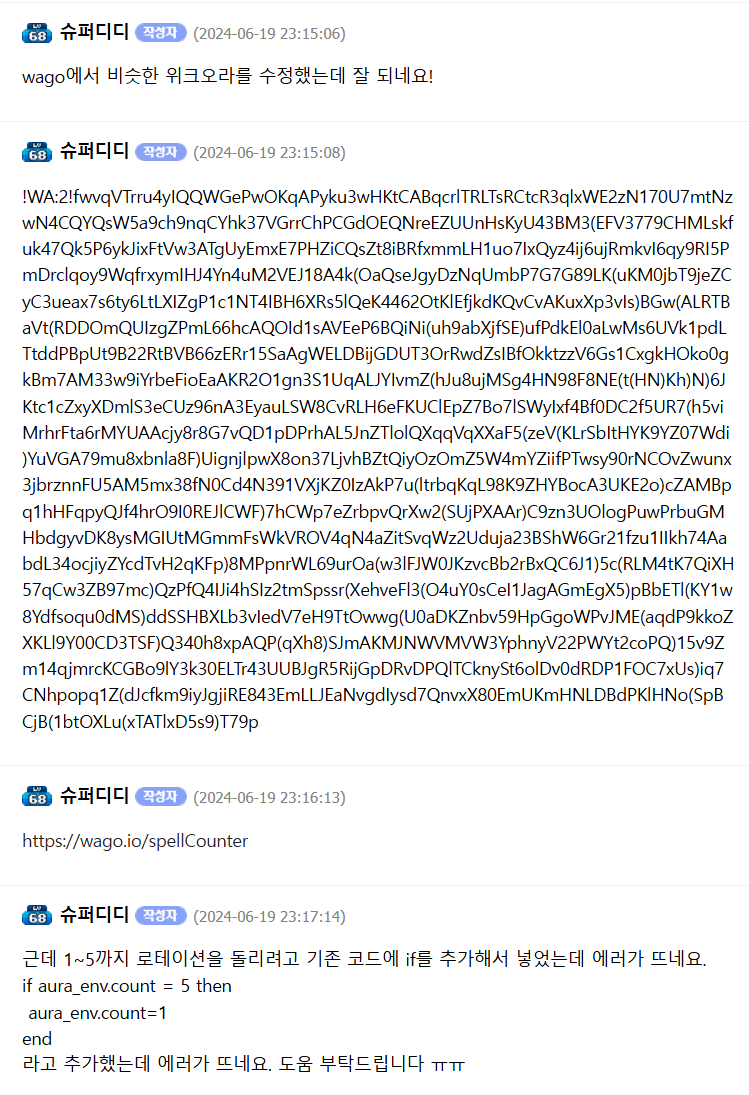 이 위크오라는 단순한 스킬 카운팅 기능만 있기때문에 수정을 조금 해야 한다
