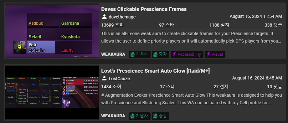Wago.io에서 "Prescience" 를 검색하면