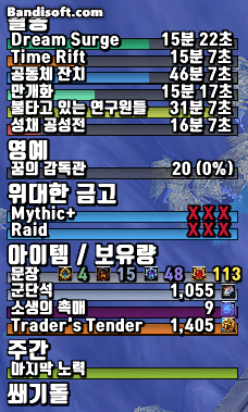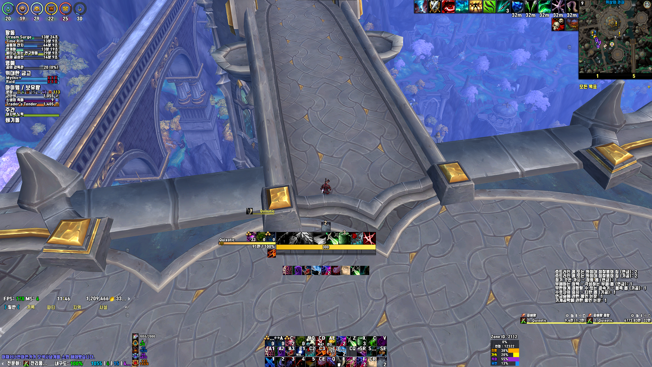 좌측 상단엔 각 진영의 평판바와 용군단 숙제 목록이 있고