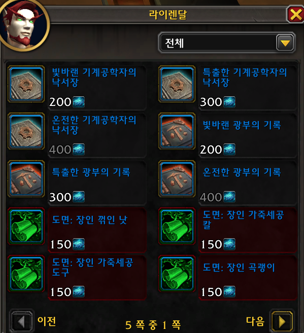 롤디라 바로 뒤 라이렌달 장인무역연합 병참장교에게서 지식 구입가능