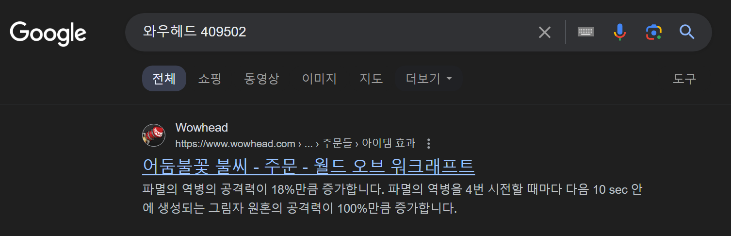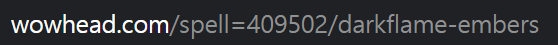 spell id를 와우헤드에서 검색해서 어둠불꽃 불씨 페이지에 들어간다