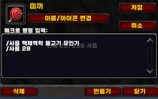 이 경우 /사용 28 매크로를 사용하여 낚싯대를 지정하지 않고 바로 낚싯대에 해당 효과를 부여 할 수 있습니다