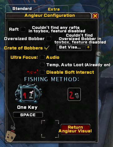 경고 Fishing Buddy와 같은 오래된 낚시 관련 애드온을 사용 중이라면 충돌이 발생할 수 있습니다