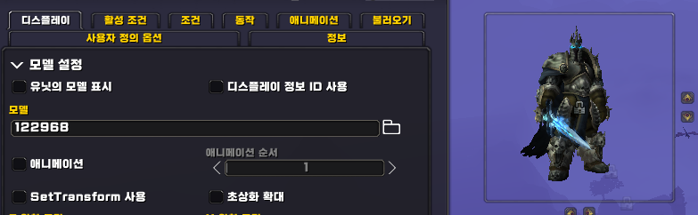 아서스의 모델을 표시하는 위크오라를 테스트용으로 만들었다