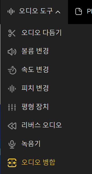 mp3cut 사이트에서 오디오 도구 - 오디오 병합을 클릭한다