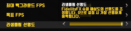 리샘플링 설정도 FidelityFX 슈퍼 해상도 1.0를 추천하고