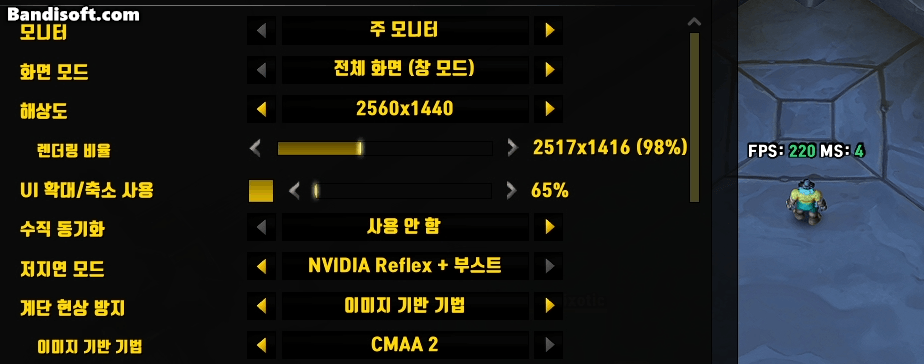 인게임에서 렌더링 비율은 2%씩 조절 가능하다