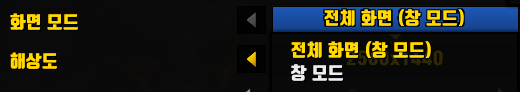 전체화면은 게임 내의 그래픽 설정이 우선 시 적용되며